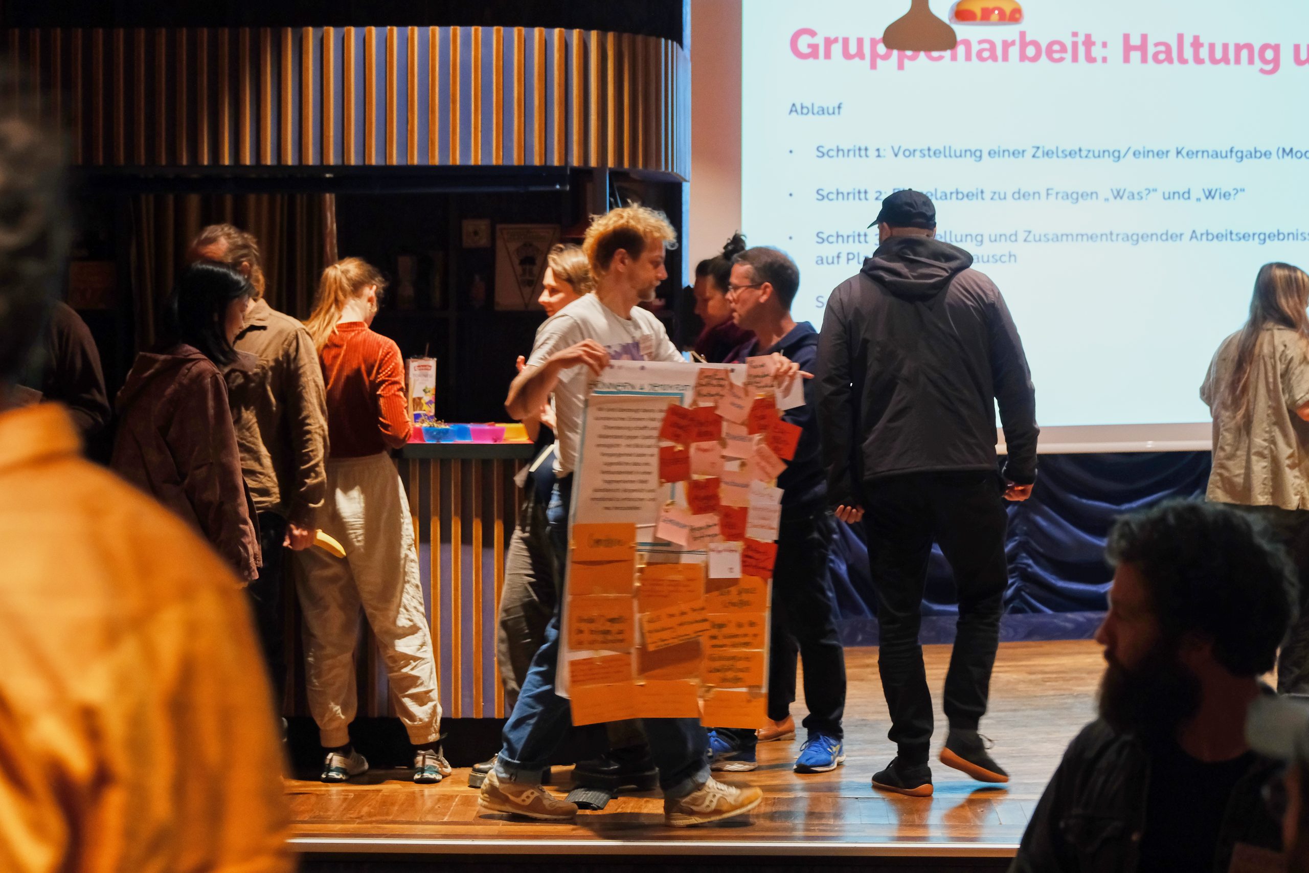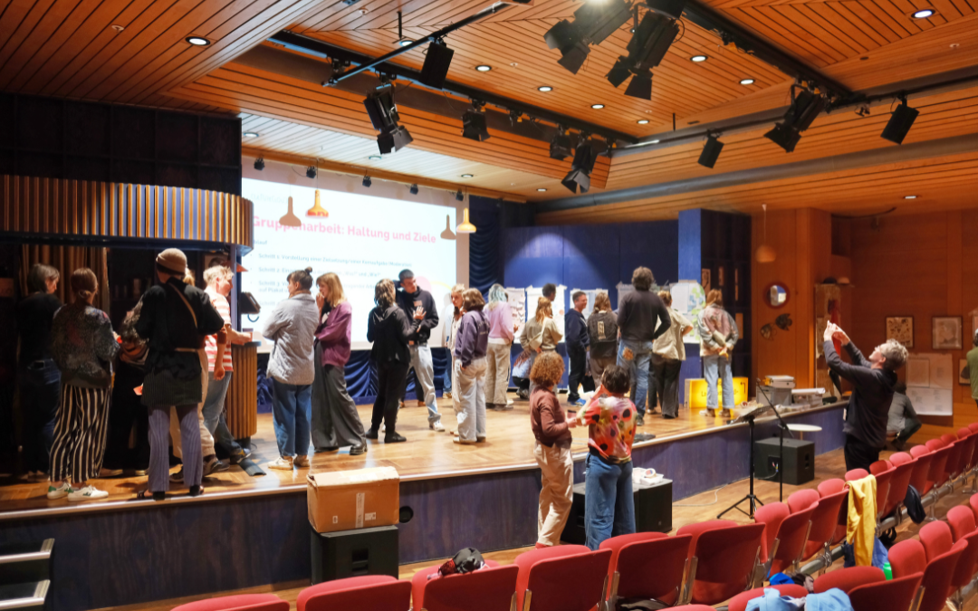 Beim CultureClouds-Kickoff am 18. & 19. April kamen erstmals rund 50 Menschen aus unterschiedlichen Professionen zusammen, um gemeinsam in die Projektjahre 2026/2027 zu starten. Das Kickoff bot Raum zum Kennenlernen, zur Einführung in die Ziele von CultureClouds sowie zu einem intensiven Austausch über Haltungen, Werte und Projektinhalte. Im Plenum und in Projektteams wurde diskutiert, gearbeitet und erprobt, wie unser neues Rahmenthema „Verbindung“ in künstlerischen Prozessen konkret erlebbar werden kann.